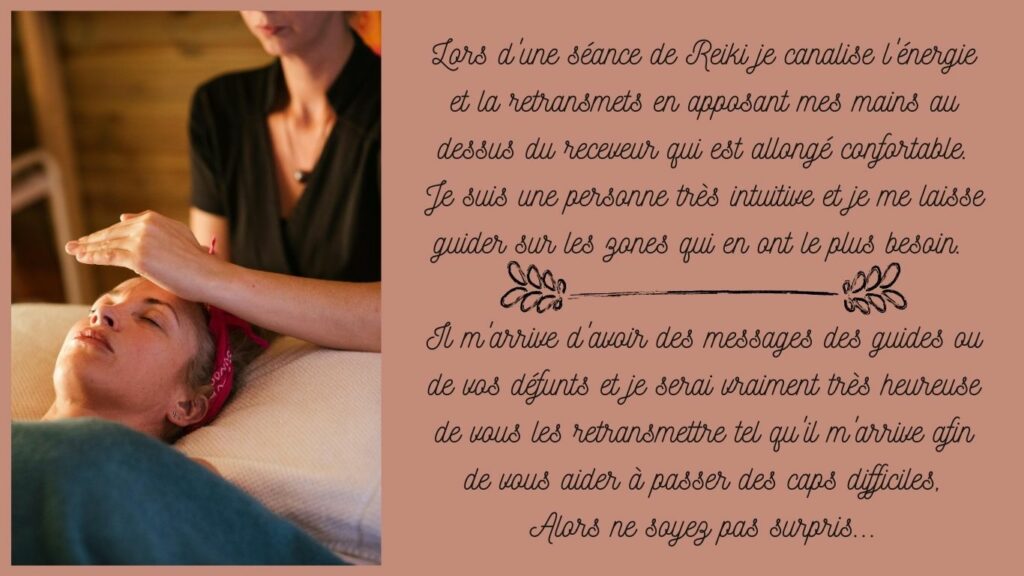 Le Reiki est une énergie qui permet de retrouver son calme intérieur et son mieux être. Elle favorise une grande ouverture de conscience par les ressentis que la séance vous procure.
